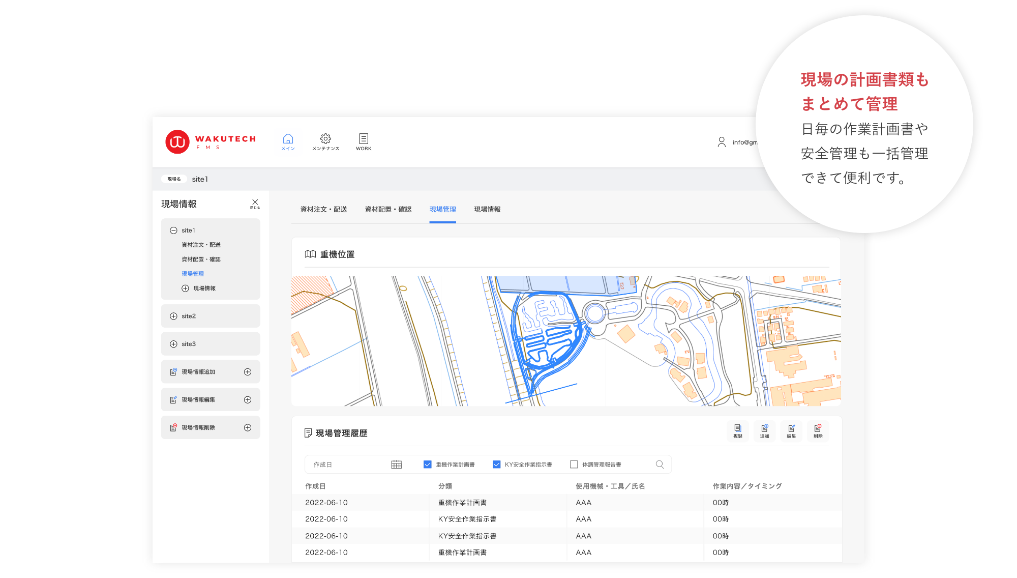 WAKUTECH FMSを使えば、すべてを横断的に一元管理できるようになります。